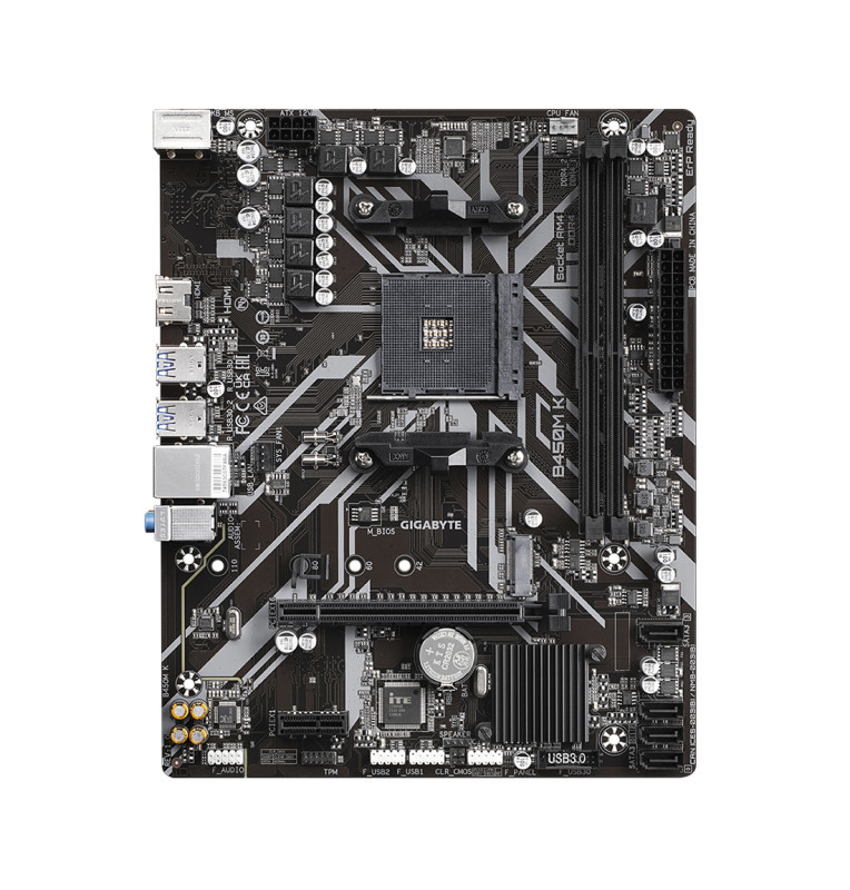 Материнская плата семейства Ultra Durable™ на базе чипсета AMD B450, контроллер Gaming GbE LAN, M.2 разъём PCIe 3.0 x4.