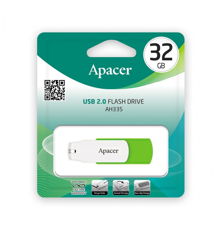 USB-накопитель, Apacer, AH335, AP32GAH335G-1, 32GB, USB 2.0, Зеленый
