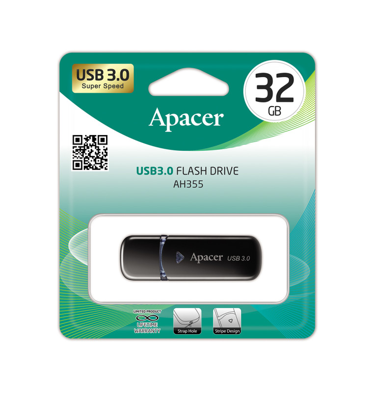 USB-накопитель, Apacer, AH355, AP32GAH355B-1, 32GB, USB 3.1, Чёрный