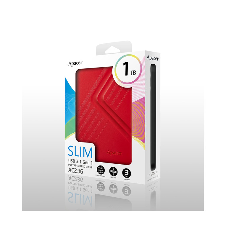 Внешний жёсткий диск, Apacer, AC236, AP1TBAC236R-1, 1TB, 2.5", USB 3.1, Красный
