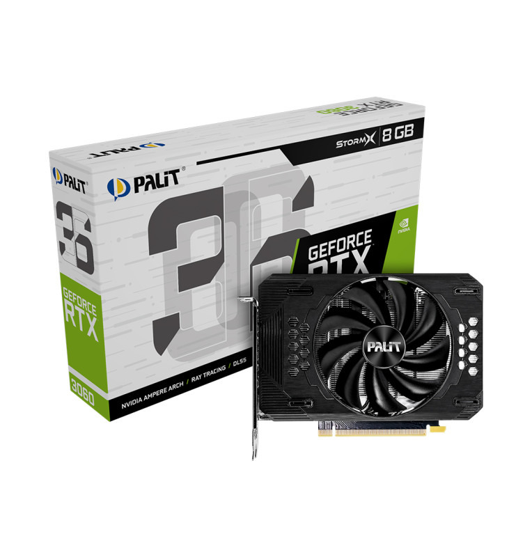 Palit GeForce RTX™ 3060 StormX: Невероятно миниатюрный дизайн вмещает в себя мощь полноразмерной видеокарты. С длиной всего 17 см Palit StormX идеально подходит для систем компактного форм-фактора. Геймеры могут на 100% ощутить производительность полноразмерной видеокарты, наслаждаясь портативностью.